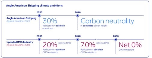 Anglo American has set an ambition to achieve carbon neutrality across our controlled ocean freight activities by 2040, with an interim 30% reduction in emission by 2030.